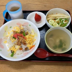ひな祭り 2024年03月04日 3月1日(金) 麦は土日お休みなので 一足先にひな祭りをしました。 昼食メニューは『ちらし寿司』 美味しそう〜 おやつは『桜餅』🌸&『きな粉餅』 ひな祭りの主役。 Sさん。 A君。 大きな口であ〜んと 嬉しそうに食べてくれました Uさんもあ〜ん。 ... もっと読む