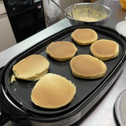 特別おやつ 2024年03月13日 今日は給食のおばさん手作りの特別おやつ。 『ホットケーキ』でした❤️ ホットプレートでどんどん焼いて行きます♪ バターを乗せてシロップを掛けたら 出来上がり❤️ Mさん、『ホットケーキ、黄色♫』と言って 楽しみに待っていました。 カッコ良くポーズ ... もっと読む