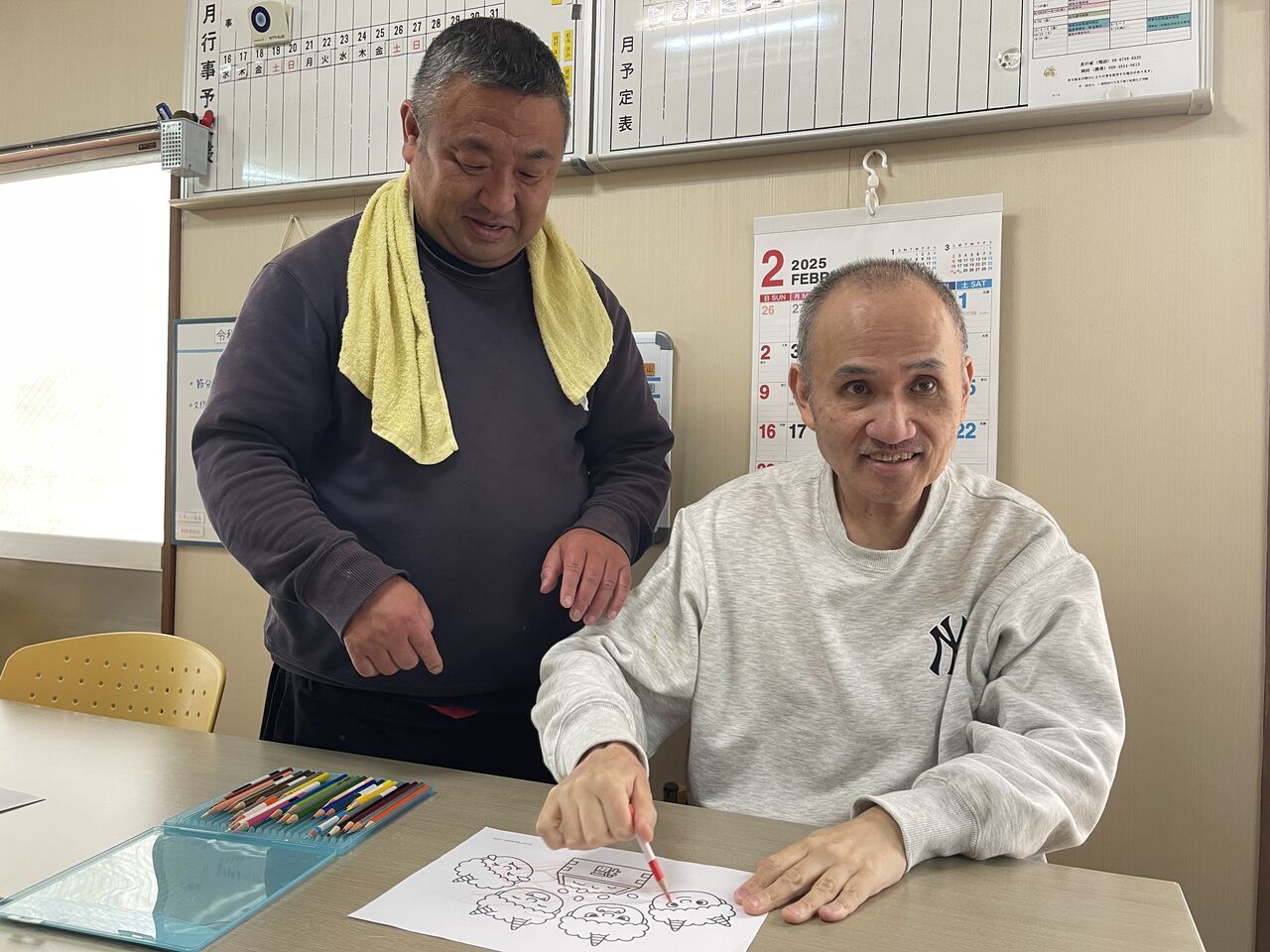 しながら、何とか鬼の髪の毛だけ塗れました。